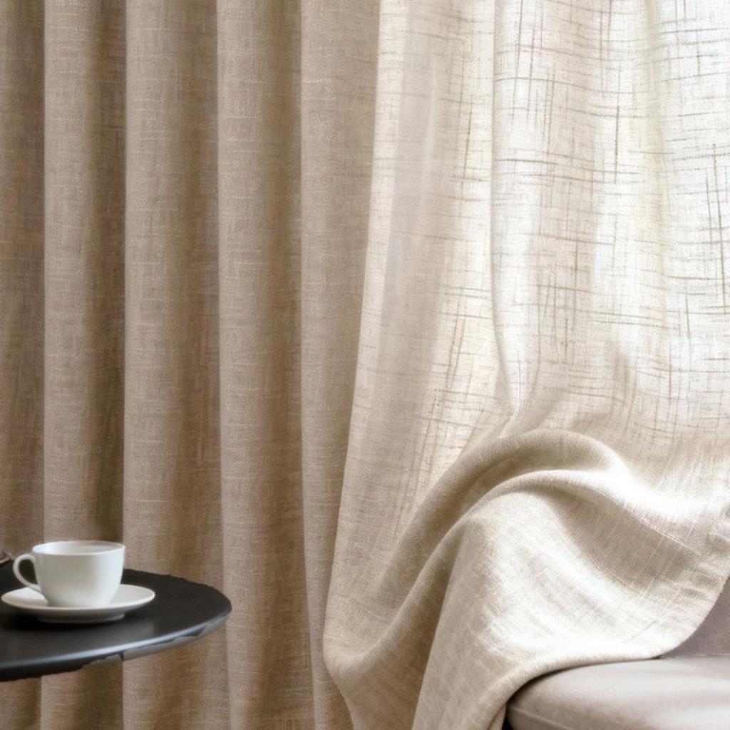 UMA CORTINA MARAVILHOSA QUE NÃO DEIXA PASSAR A CLARIDADE COM UM TECIDO (FORRO) BLACKOUT E OUTRO POR CIMA NO VOIL QUE DEIXA ELEGANTE E CHARMASA SUA SALA.