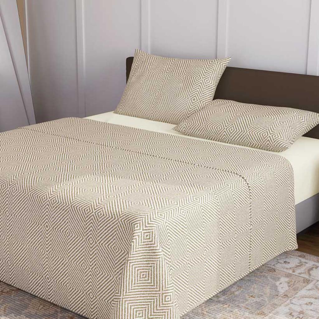 O jogo de cama Madre apresenta todo o conforto e sofisticação da linha 100% algodão com 150 fios. Combinando tons acolhedores, sua estampa remete as texturas em tricô, onde os pontos se transformam em uma padronagem única. Seu tecido de qualidade tem um toque super macio, lava com facilidade e não perde a intensidade das cores, além de ser perfeito para acrescentar beleza e elegância ao ambiente. Praticidade e aconchego com o Jeito Lepper, para noites agradáveis e bem dormidas.