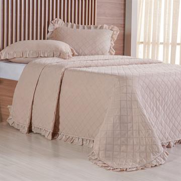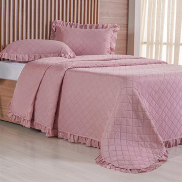 O Kit Colcha Frufru king é perfeito para quem ama detalhes que fazem a diferença. Com babados aplicados nas barras e nos porta-travesseiros, ele traz um toque de elegância e romantismo, transformando sua cama no destaque da decoração.